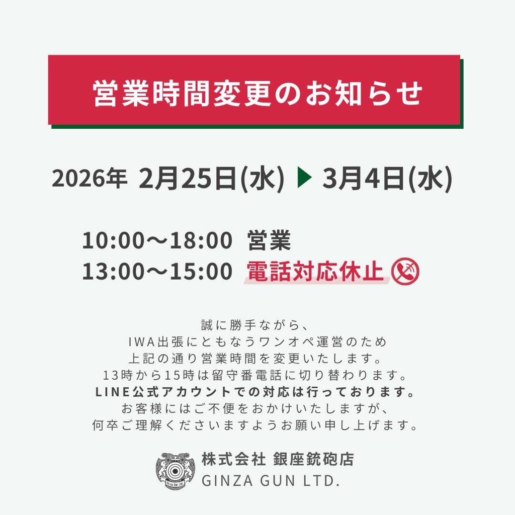 平素より銀座銃砲店をご利用いただき、誠にありがとうございます。